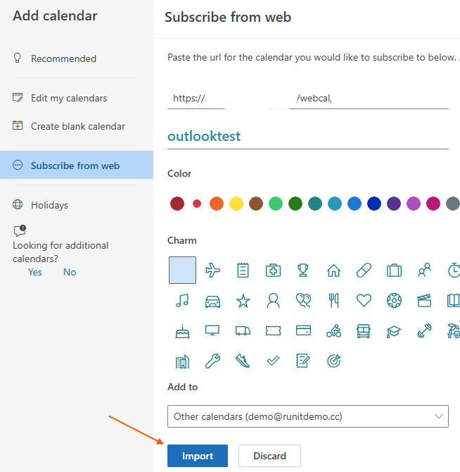 4. Choose Webcal