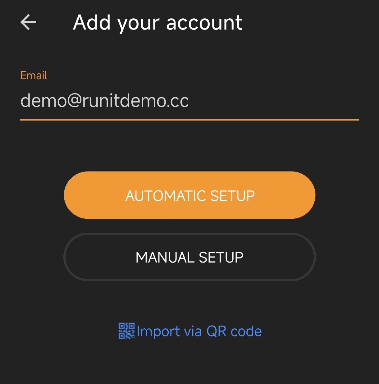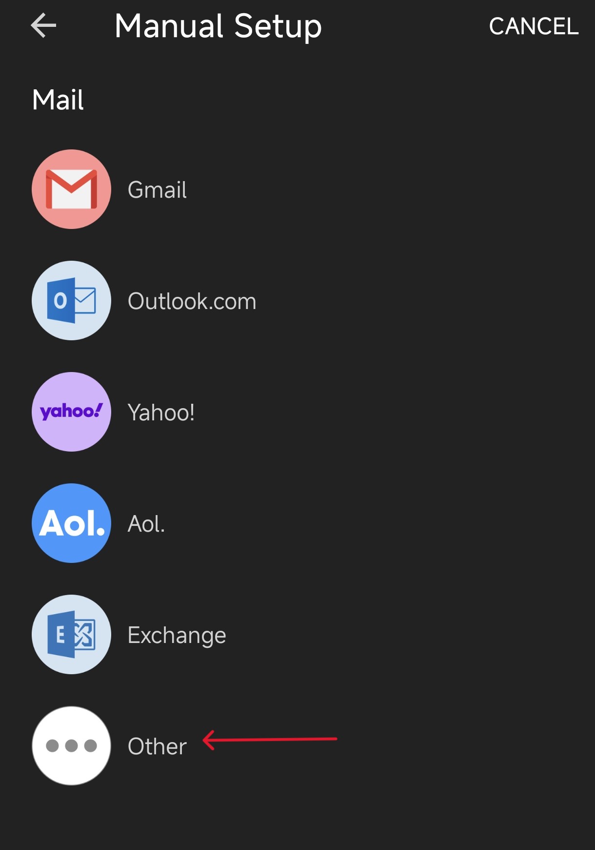 - Add Account > Your Email > Manual Setup > Other