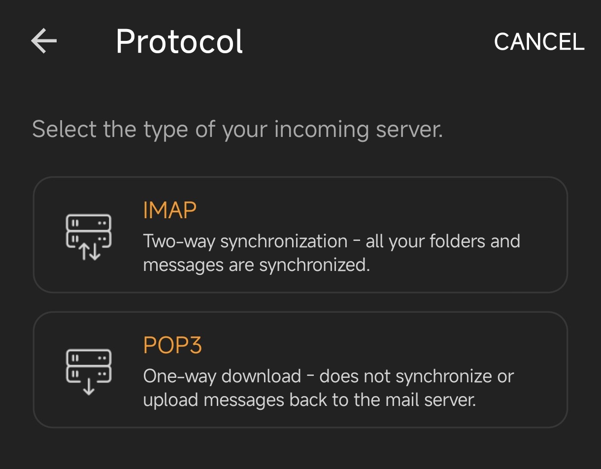 Configure IMAP or POP for eM Client ( SmartPhone)