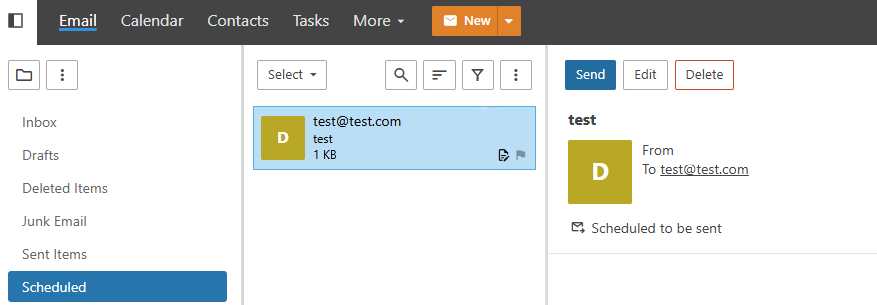 - Navigate to the Scheduled Emails folder to review or edit your scheduled emails before they are sent.