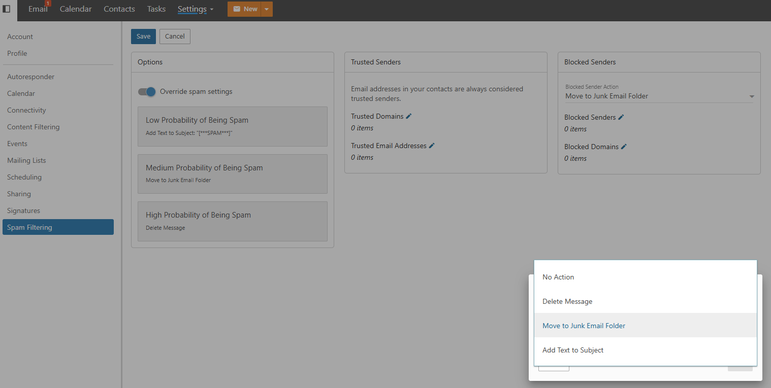 - Click on the Spam Filtering tab on the left.