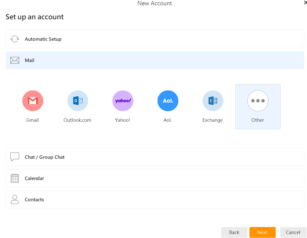 - Expand the Mail section, choose Other then click Next.